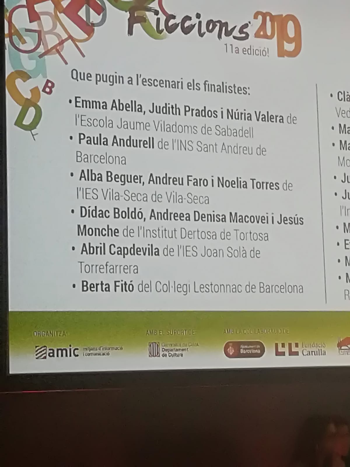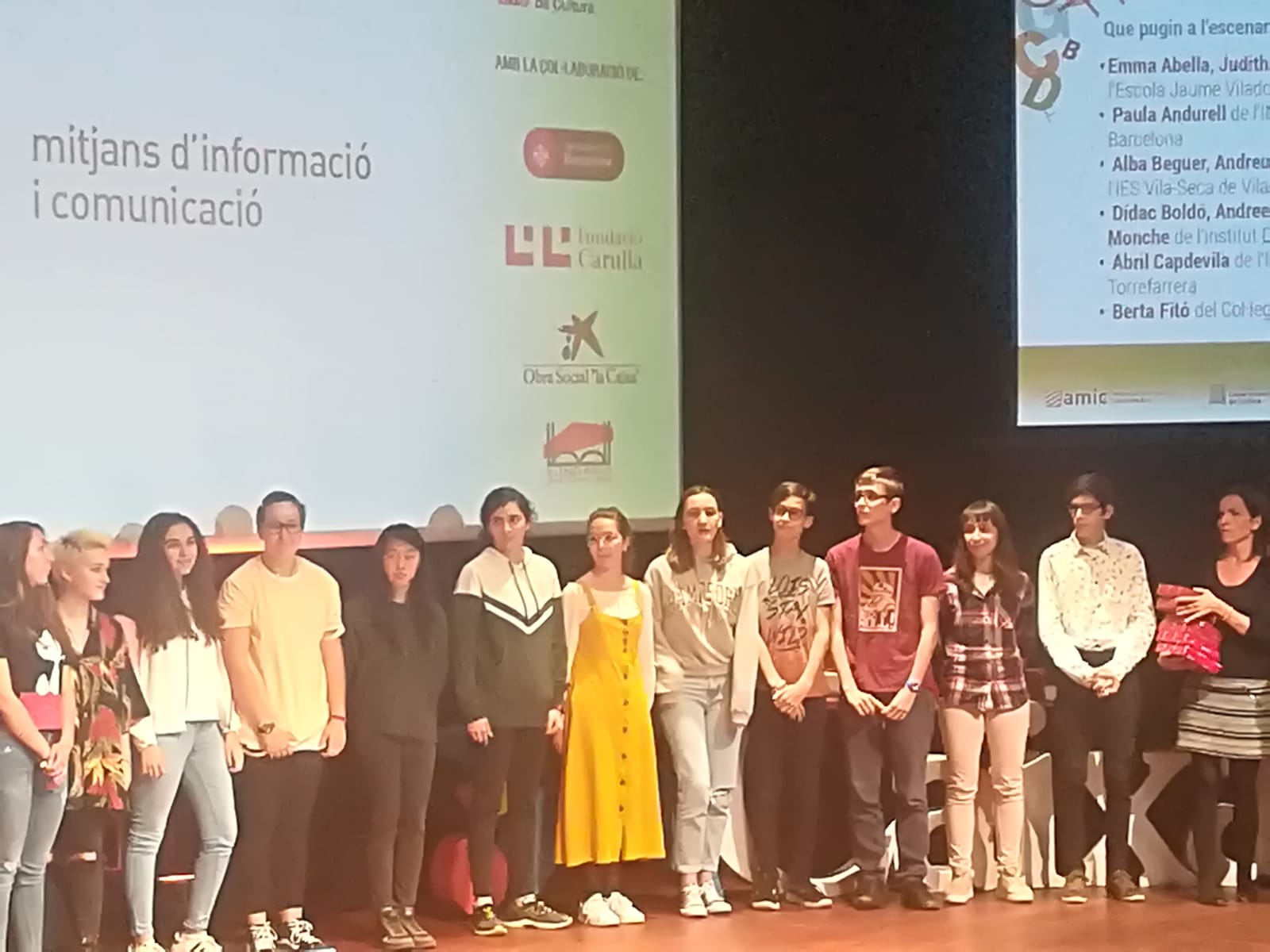 El dimarts 21 de maig es va celebrar al CaixaForum de Barcelona el lliurament de premis per a l’edició d’enguany del concurs Ficcions, d’invenció de relats. Tres alumnes de 4t d’ESO, Andreea Macovei (4t B), Dídac Boldó i Jesús Monche (4t C) hi van participar i van arribar a la final. L’alegria va ser enorme quan van sortir els seus noms com a guanyadors en l’àmbit de les Terres de l’Ebre. Si voleu llegir el seu relat, podeu clicar aquí. Els volem felicitar sincerament i els encoratgem a continuar llegint i escrivint per a poder gaudir d’experiències com esta.