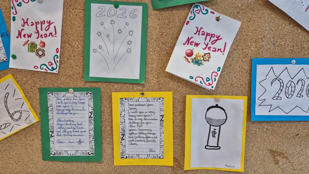 At the beginning of the year, we also received New Year 2026 greeting postcards from France and Latvia, and a small selection of these has been displayed, reinforcing the sense of belonging to a shared European community.