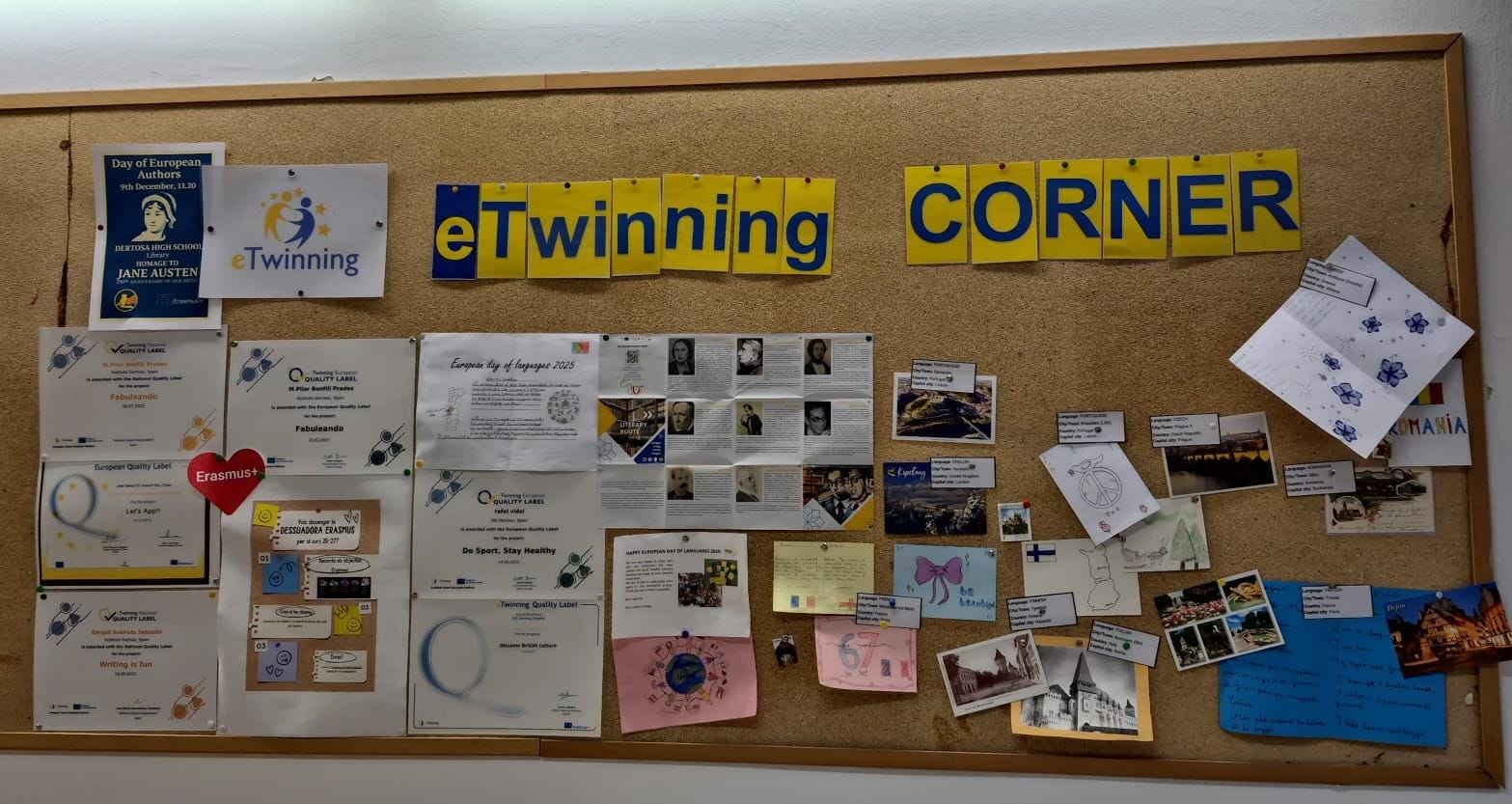 During the 2025–26 school year, our eTwinning Corner continues to grow with new activities and materials that reflect the strong European dimension of our school. To celebrate the European Day of Languages, postcards received from partner schools across Europe were displayed, representing 15 different languages and promoting linguistic diversity.