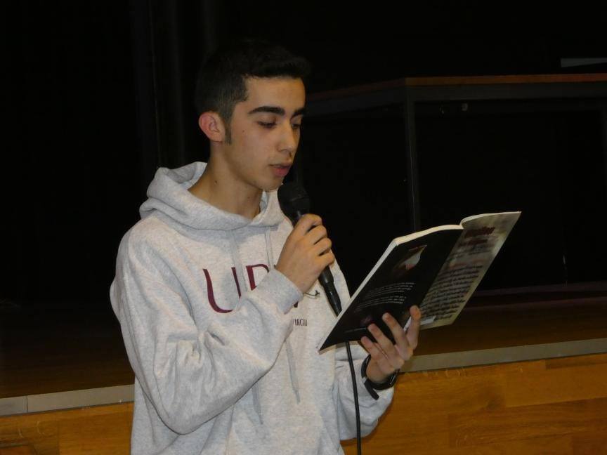 No podíem passar per alt un dels moments més especials de l’acte: la lectura d’un fragment de l’obra Vinallop, notes històriques. L’alumne Pablo Moreno va ser l’encarregat de realitzar la lectura, oferint un homenatge ple de sentiment i reconeixement al llegat literari de l’historiador.