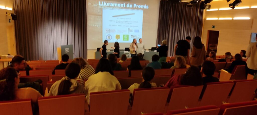 Le 9 mai dernier, l’auditorium du campus du Poblenou de l’Université Pompeu Fabra a accueilli la cérémonie de remise des prix du XXV Concours de Traduction. Les étudiants Isaac Artells, de 2e année de bachillerato E, finaliste de la traduction du français vers le catalan; Robert Borza, de 1re année de bachillerato A, finaliste de la traduction de l’allemand vers le catalan; et Pol Andrés, finaliste du concours de traduction de l’allemand vers le catalan dans la catégorie ESO, ont eu l’honneur d’assister à cet événement émouvant.