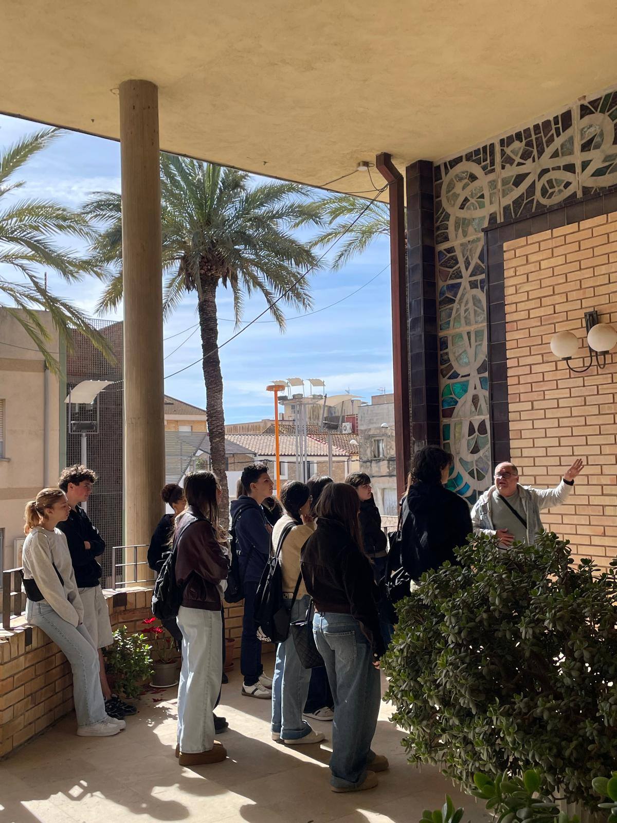 Acompanyats pels professors Ramon Ruiz i Emigdi Subirats, la jornada es va iniciar amb la visita al Temple parroquial de Sant Joan Baptista, un edifici que, més enllà de la seua funció religiosa, constitueix un veritable espai d’interès artístic contemporani. El temple destaca per integrar obres de diversos artistes catalans rellevants del segle XX, fet que el converteix en un exemple clar de diàleg entre arquitectura i arts plàstiques.