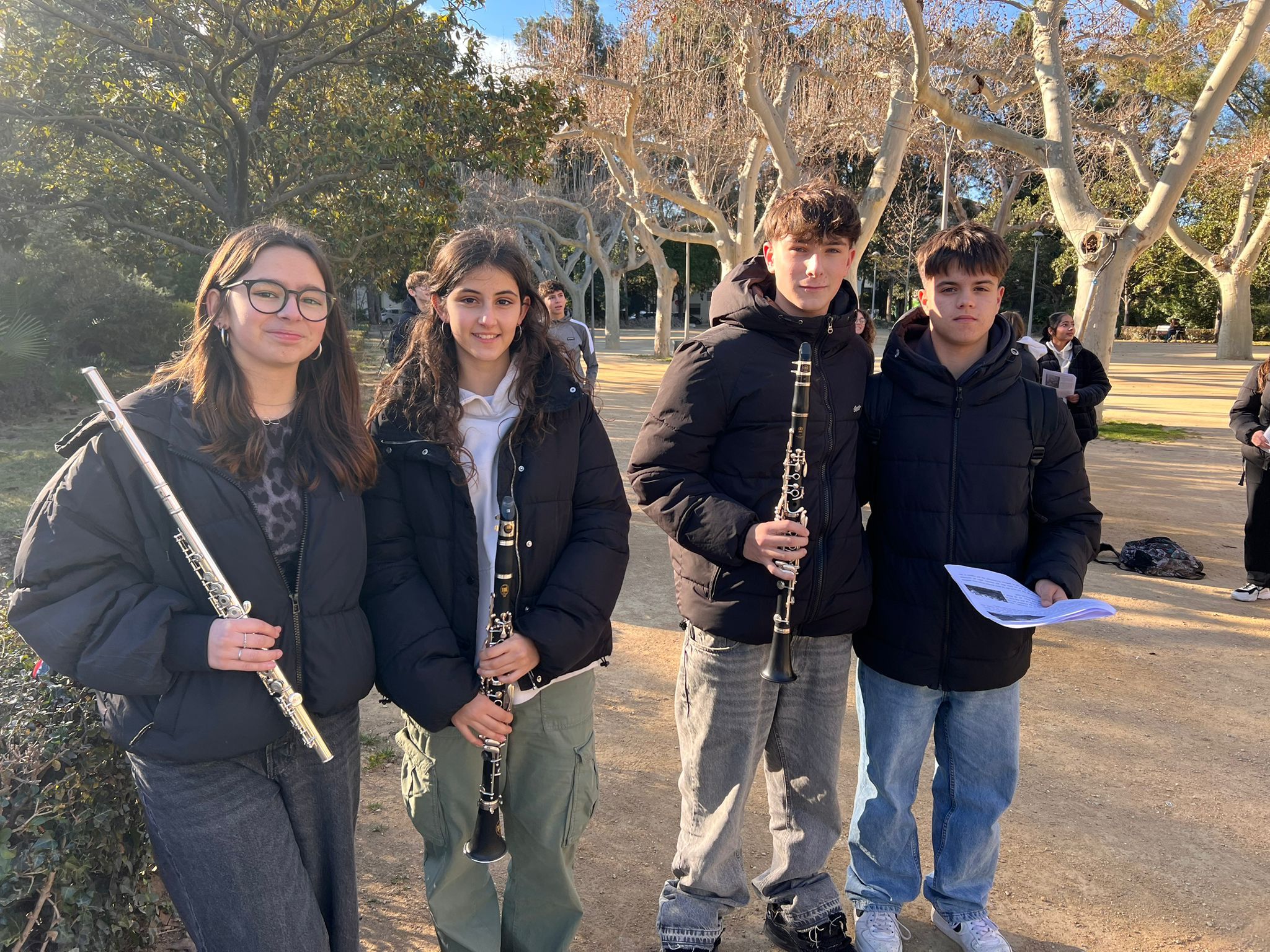 Die Deutschschüler der 10. Klasse haben an verschiedenen Orten im Park Textstellen aus “Heidi” vorgelesen. Musikalisch wurden sie von den Schülern Cinta Hierro und Marc Sanchez-Camacho an der Klarinette und Martina Pedrola an der Querflöte begleitet. Die Route führte über fünf Stationen: die Hauptallee, die Eisenbahnmaschine, das Café, einen Brunnen und den poetischen Raum, der Gerard Vergés gewidmet ist.