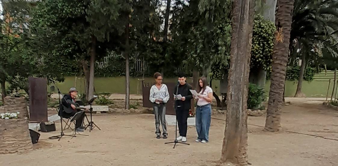 Els alumnes Hèctor Rayo, Sara Aioanei i Odette Ndiaye, de 1r de batxillerat G, van participar durant la diada de Sant Jordi en l’acte institucional organitzat pel consistori tortosí en homenatge a Gerard Vergés, el poeta tortosí, en el dotzè aniversari del seu traspàs. En el marc d’aquest esdeveniment, van oferir una lectura acurada i emotiva dels poemes Fràgil com un vidre és la memòria, Als poetes estimats i Escoltant els cants d’Ausiàs March. L’acte, celebrat a l’Espai Vergés del parc municipal, també va comptar amb una intervenció musical a càrrec de Pili Cugat i Carles Lupprian, que va aportar una dimensió artística complementària i enriquidora.