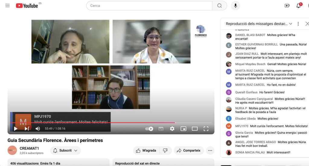 A la xarrada, la Núria va presentar com va dissenyar la seqüència d’activitats i com les va portar a classe el curs passat. Per acabar, va respondre les preguntes que els assistents van plantejar pel xat, els quals van valorar molt positivament aquestes estratègies i van engrescar-se a portar-les a l’aula.