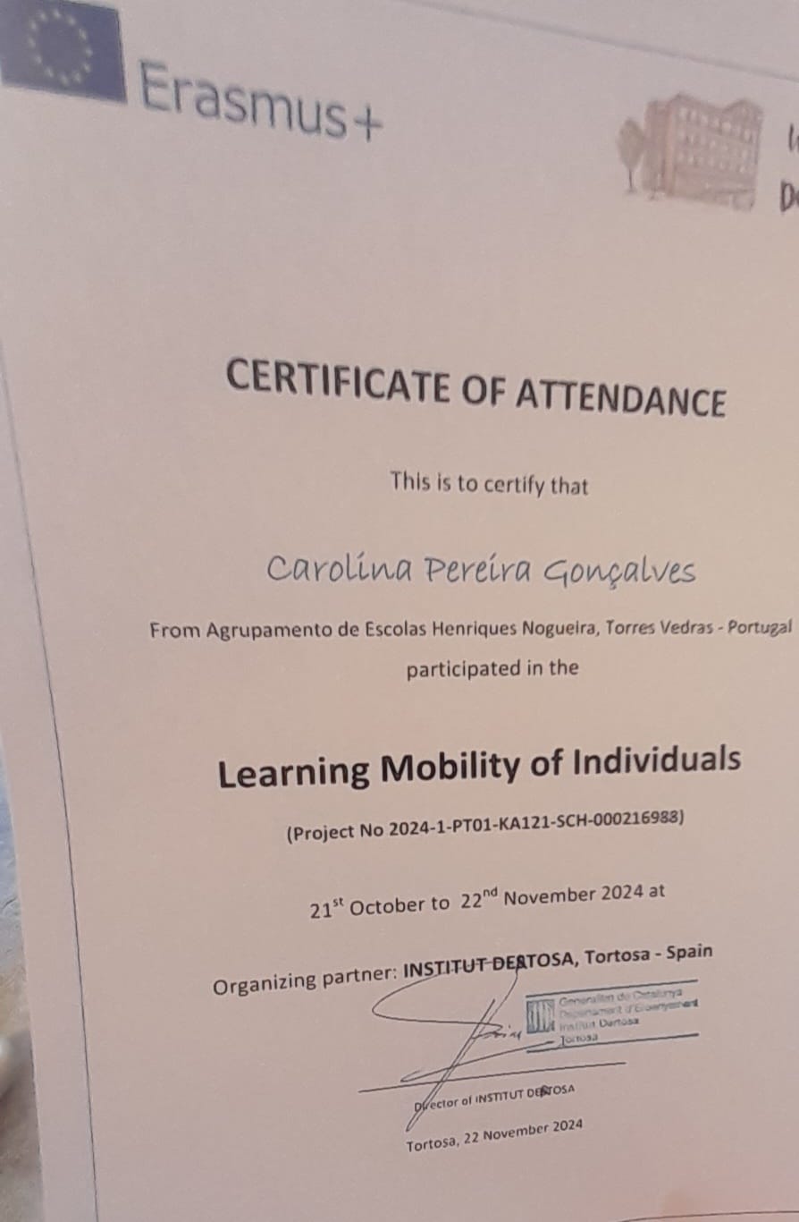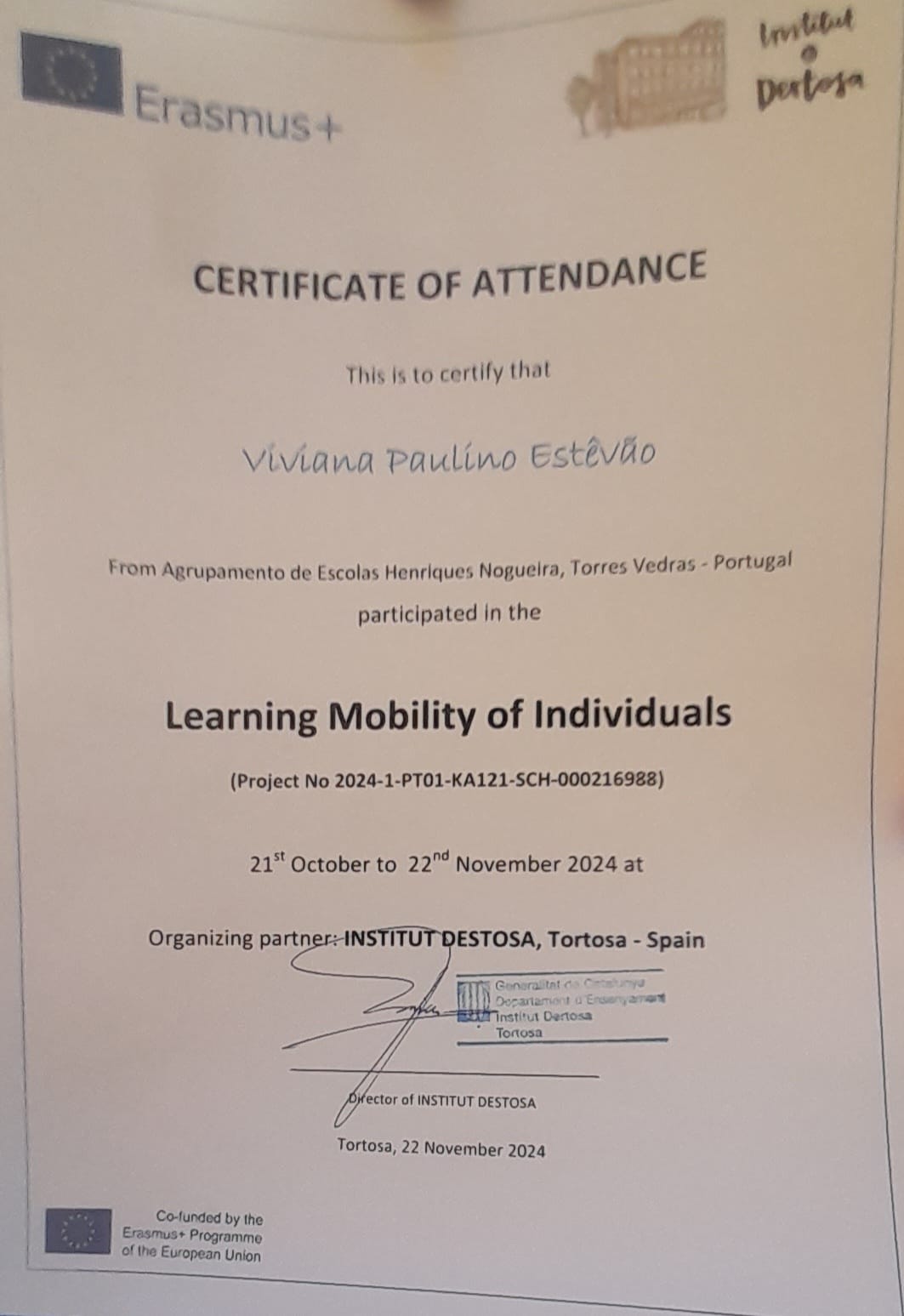 Aquest mes de novembre el nostre institut ha tingut la possibilitat de rebre les alumnes Carolina Pereira Gonçalves i Viviana Paulino Estevao, procedents de l’Agrupamento de Escolas Henriques Nogueira, de Torres Vedras, Portugal. Ambdues alumnes han participat en un programa Erasmus de llarga durada, passant un mes complet immerses en la nostra comunitat educativa.