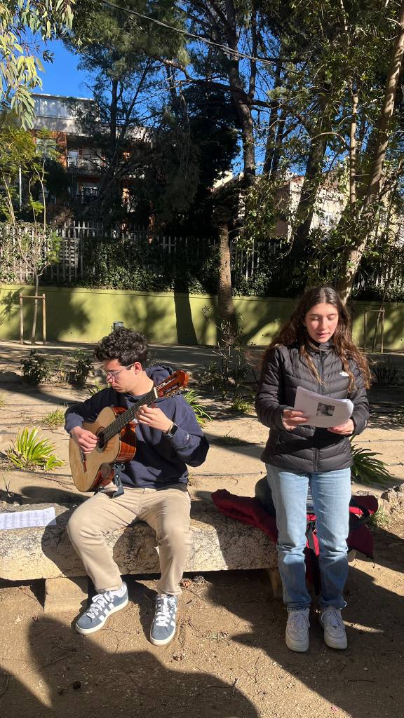Els alumnes de literatura castellana de 2n de batxillerat i del 2n de batxillerat A han participat activament en aquest esdeveniment. Pau Antolí ha estat l’encarregat de l’acompanyament musical, que ha donat un toc especial a la jornada.