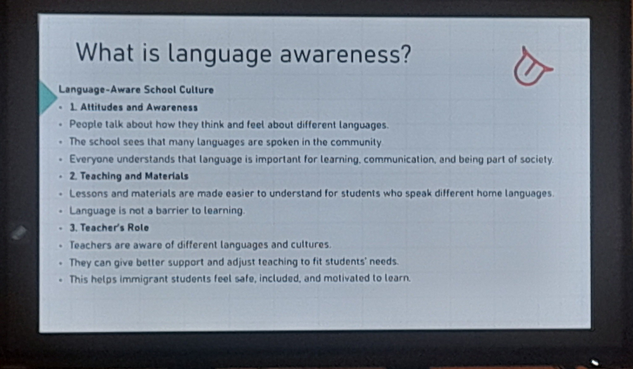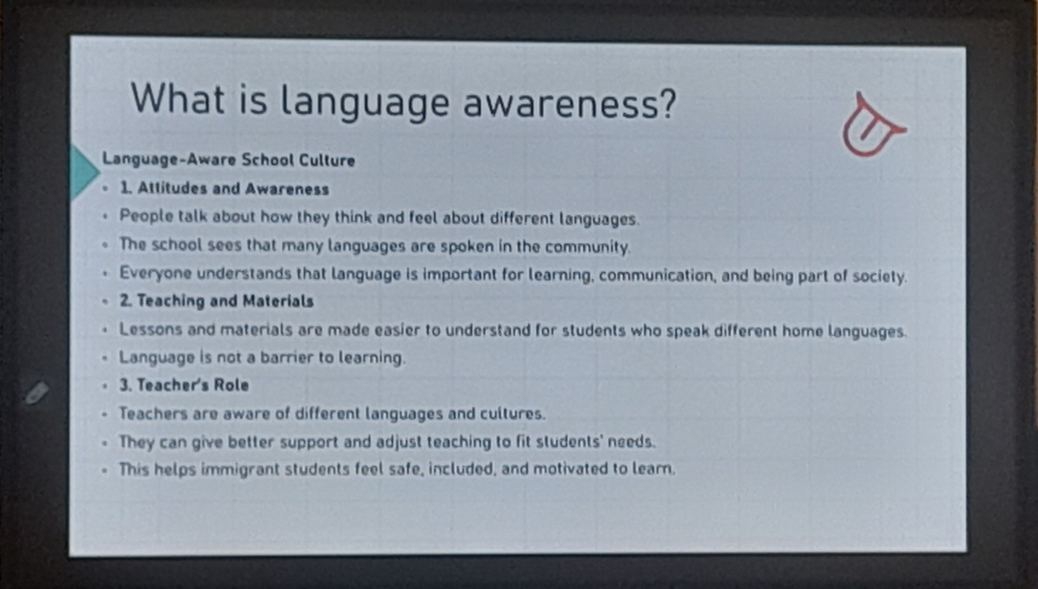 Another important topic discussed was the linguistic awareness of immigrants. The experts emphasized how crucial it is for learners to understand the importance of acquiring the local language for both social and professional integration. They also shared methods used in Finland to raise this awareness and encourage proactive learning.