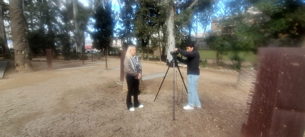 A més a més, la jornada va incloure una experiència molt especial durant la classe d’alemany de batxillerat a les 11:30 del matí. Aquesta classe es va realitzar a l’aire lliure, creant un escenari ideal perquè Canal 21, la televisió local, enregistrés la sessió i la mostrés al públic. Les càmeres també van captar entrevistes amb les professores alemanyes i amb una estudiant de l’IGS Sassenburg, donant una visió més personal del programa Erasmus+ i del que representa per als participants. Aquesta experiència va suposar una connexió real entre l’aprenentatge, la comunicació intercultural i la difusió mediàtica.
