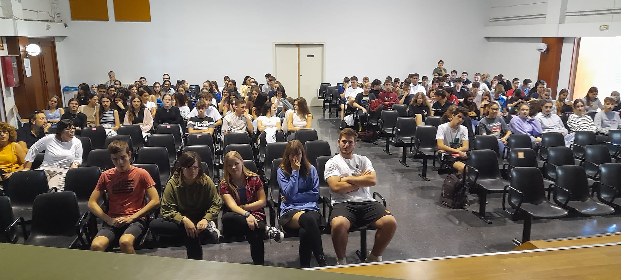 El Dr. August Bover, membre de la secció filològica de l’Institut d’Estudis Catalans, va impartir una xerrada a l’alumnat de 1r de batxillerat del nostre centre dijous 6 d’octubre. Natural de Barcelona i resident a Sitges, aquest catedràtic emèrit de la Universitat de Barcelona, escriptor i poeta els va fer cinc cèntims sobra la història de la institució, la veritable acadèmia de la llengua catalana que regula les normes a seguir quant a la llengua literària. Es va entaular un interessant diàleg sobre el fet dialectal en algunes llengües i el seu ús literari respectiu. Val a dir que algunes d’aquest parles són les natives de les famílies de molts d’aquests alumnes.
