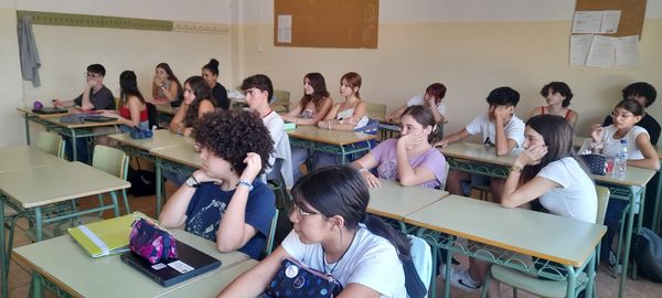 L’alumnat del 1r de batxillerat G, l’escènic, va rebre la visita de tres membres del grup de rock ebrenc Obscens, el passat dilluns 2 d’octubre. Els músics Ernest Redó, Adolfo Aixalà i Jordi Mendoza els van fer cinc cèntims de llur trajectòria musical en conjunts molt diversos i estils musicals ben heterogenis al llarg dels anys, des de música clàssica a rock & roll. Van resultar molt didàctiques i interessants les seues explicacions sobre el seu grup actual, i també la funció de cada músic com a guitarrista, teclista, baixista o cantant. Justament el proper 27 d’octubre presenten el seu nou disc Sota un cel sord al Casal tortosí.