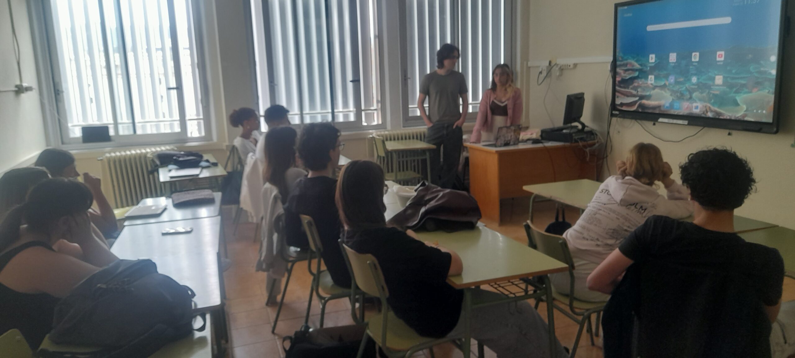 Els exalumnes Laura Santo Tomàs i Efren Carles van impartir una xerrada molt interessant a l’alumnat de 1r de Batxillerat G, artístic, el dimarts 28 d’abril. Durant la sessió, van parlar sobre el món dels videojocs i la creació d’empreses audiovisuals, compartint la seua experiència personal i professional.