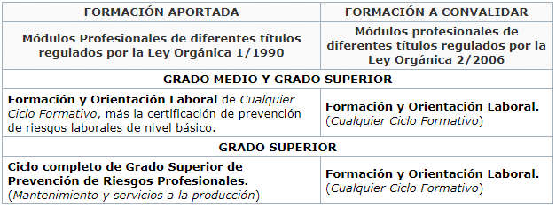 FORMACIÓN A CONVALIDAR