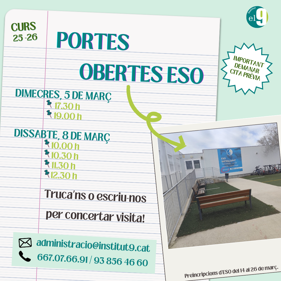 A continuació us deixem tota la informació de les Portes Obertes de l’ESO:
