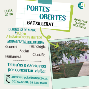 Podeu veure el nostre vídeo en el següent enllaç: PORTES OBERTES 25