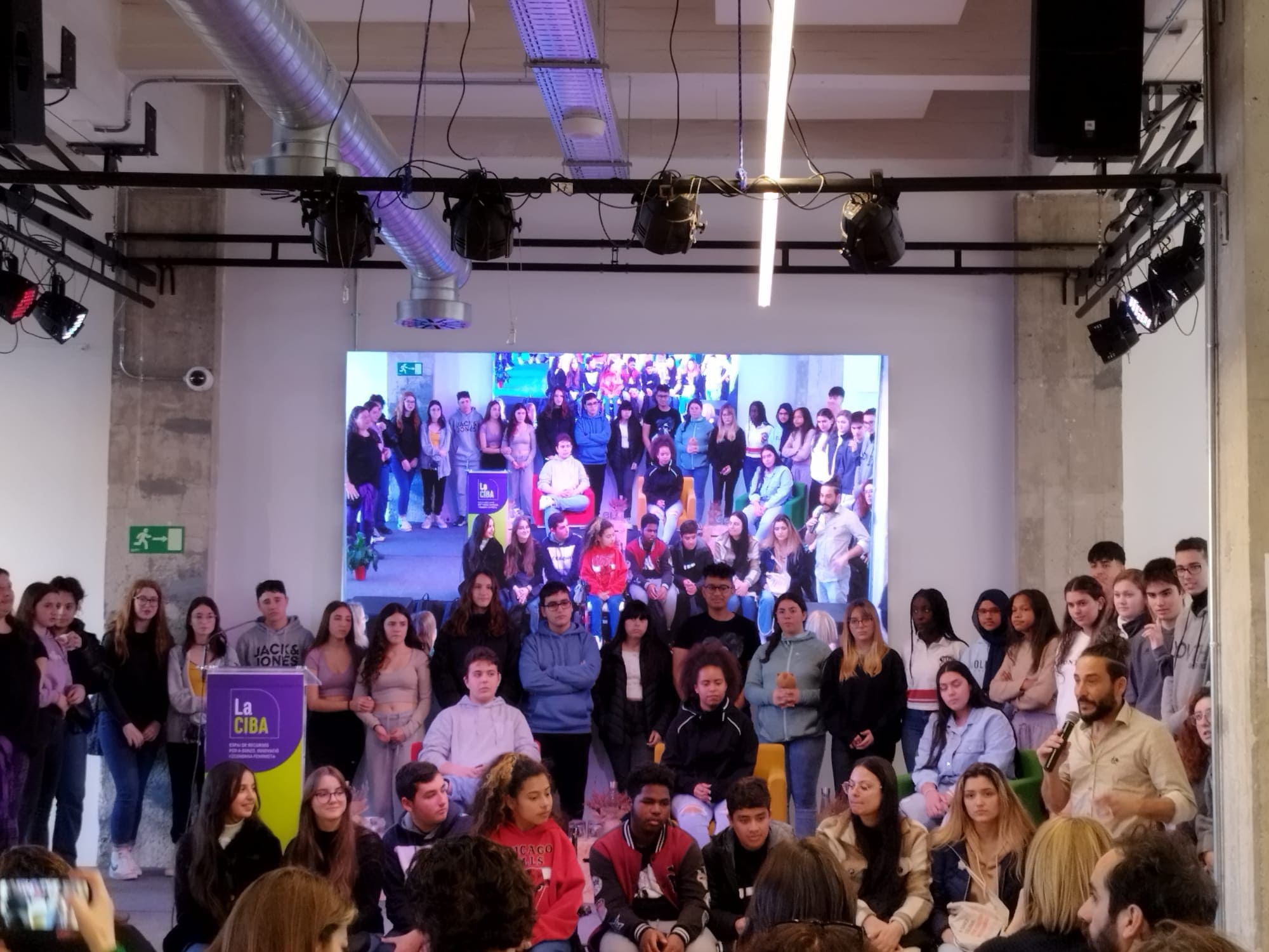 A part de compartir experiències i projectes entre professionals de diferents municipis, l’alumnat dels diferents instituts de Santa Coloma que treballa per la bona convivència als centres educatius, va exposar com ho apliquen al seu institut. En el cas del 9, els representats de tot l’alumnat voluntari de la nostra comissió de convivència van ser: la Noa cognom, el Gerard cognom, la Krissia cognom, la Tahïs cognom i el Seve cognom.