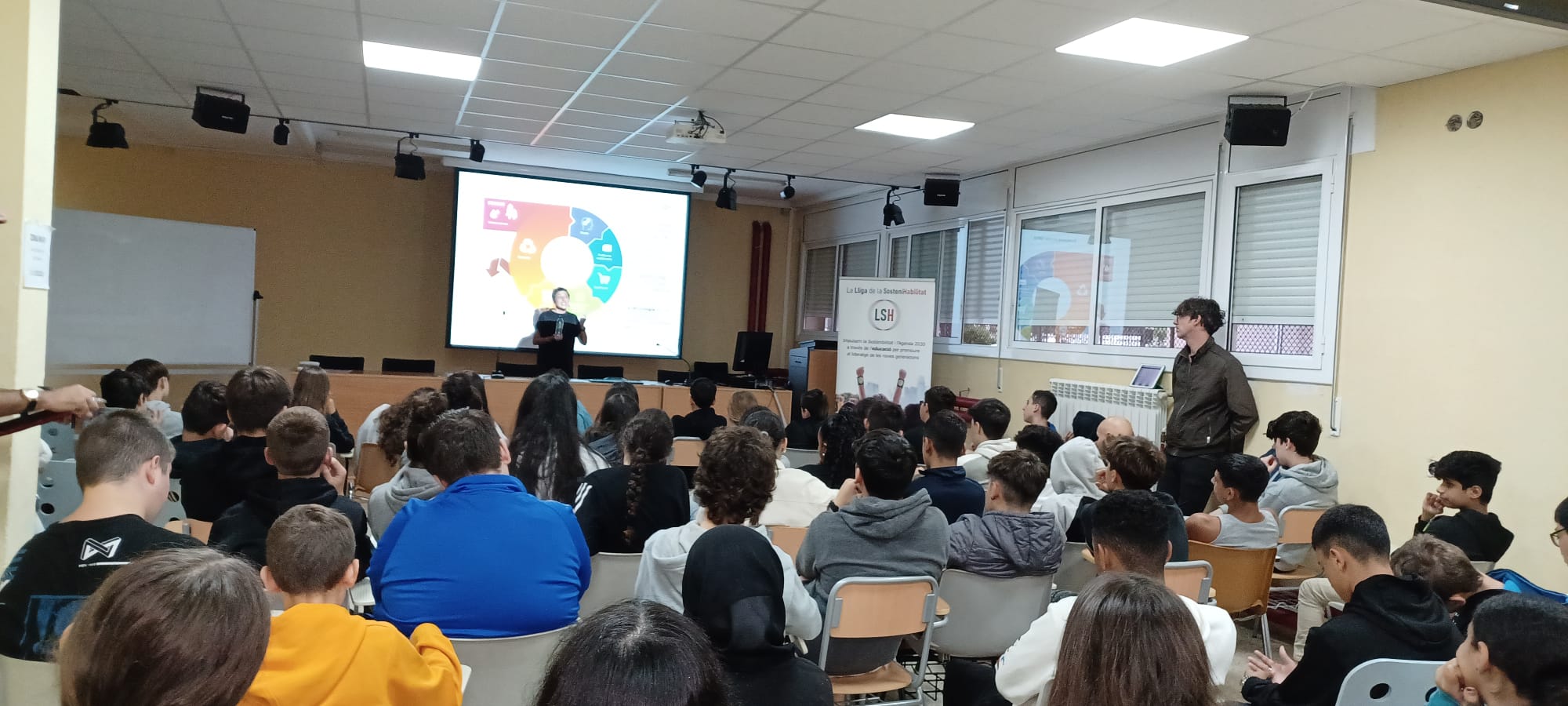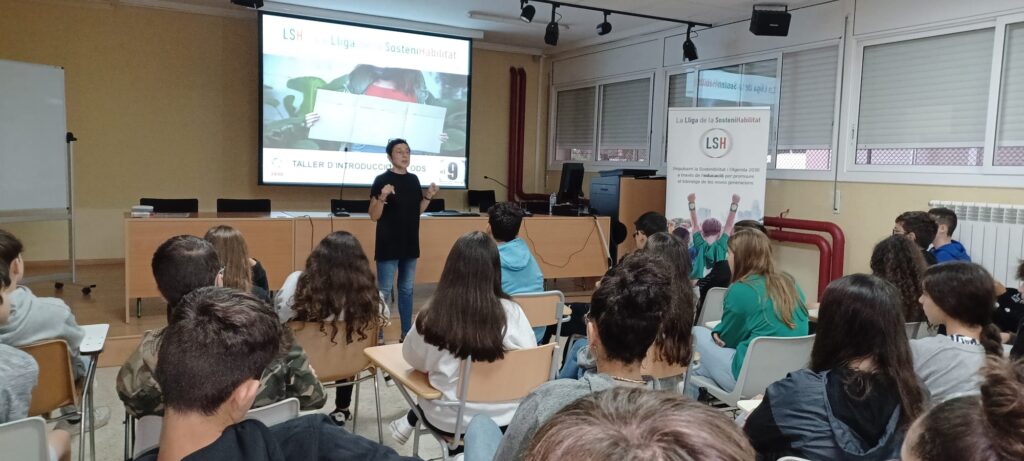 Entre els dies dijous i divendres l’alumnat de l’institut assisteix a unes xerrades portades per l’Imma Pérez. El moviment de la Lliga de la Sostenihabilitat té com objectiu promoure l’activisme de nens, nenes i joves per fer accions compartides i poder fer-los partícips del canvi que es demana per un món millor, escoltar-los i donar l’oportunitat per “aprendre fent”. L’Imma, amb el seu tarannà enèrgic ha pogut explicar i situar a tot l’alumnat on ens trobem i quines petites accions podem fer per millorar el nostre entorn.