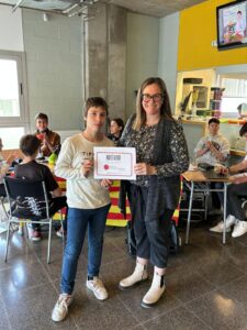 Al final del programa de ràdio s’han entregat els premis del concurs literari de Sant Jordi d’enguany. Aquí en teniu els guanyadors: Martí Alegre, de 1r ESO B, amb el relat “El Sant Jordi de Tortosa” (categoria català secundària); Paula Gauxachs, de 2n batxillerat CNTEC, amb “Amor d’estiu” (categoria català batxillerat); David Aguilar, de 1r ESO B, amb “La noche” (categoria castellà secundària); Ariadna Pla, de 2n ESO D, amb “Forever and always” i Cinta Accensi (categoria professorat i personal no docent) amb “La mestra dels meus somnis”.