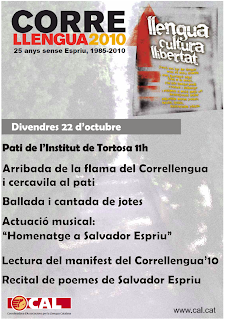 Divendres 24 d’octubre el Correllengua 2010 arriba a l’Institut de Tortosa.