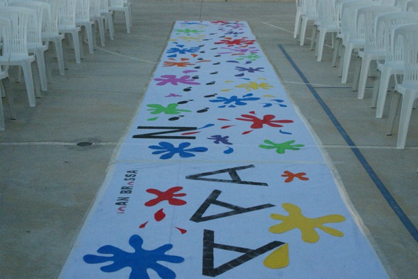L’escenari muntat al pati de l’institut amb la col·laboració de professors i alumnes estava fet amb una decoració alegre, acolorida i molt treballada. Enhorabona!