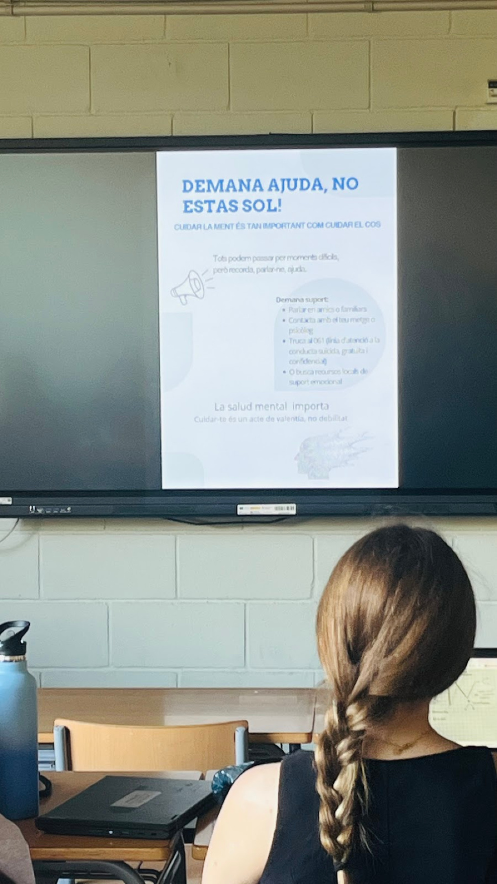 Durant dues hores, han treballat en equips per parlar sobre la importància del benestar emocional, el respecte i com trencar l’estigma que encara envolta la salut mental. Després d’una pluja d’idees i vídeos, han creat pòsters sobre temes com l’estrès als estudis, l’impacte de les xarxes socials o la necessitat de demanar ajuda.