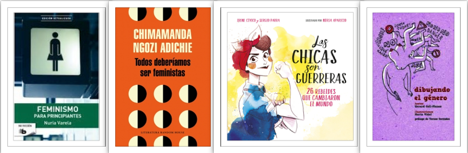 Feminismo para principiantes, de Nuria Varela Menéndez. Ediciones B, 2013; Todos deberíamos ser feministas, de Chimamanda Ngozi Adichie. Literatura Random House, 2015; Las chicas son guerreras. 26 rebeldes que cambiaron el mundo, d’Irene Cívico. Montena, 2016; i Dibujando el género, de Gerard Coll-Planas. Egales, 2016.