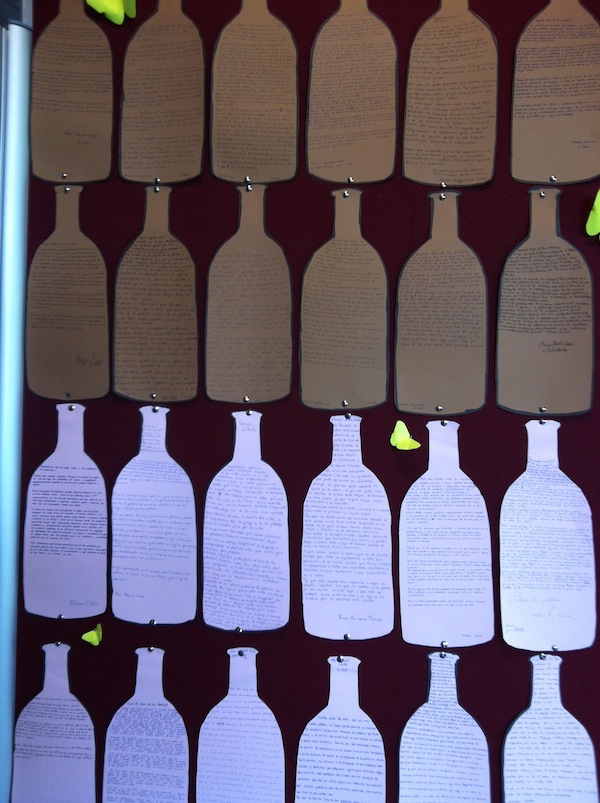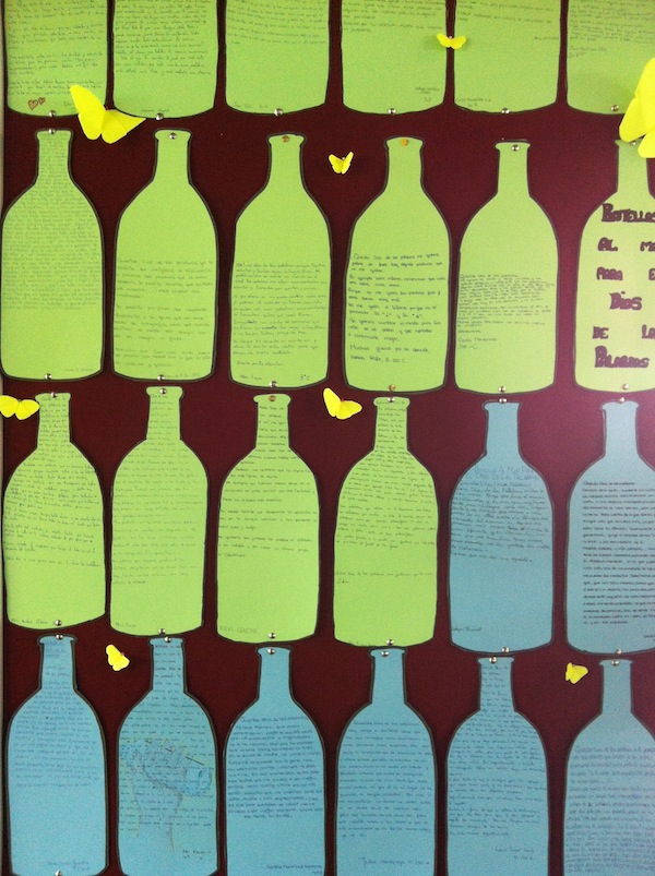 La principal aportació nostra va ser la redacció d’una carta per al Dios de las Palabras, en què hem fet peticions per a millorar la llengua. Les cartes escollides de cada classe les vam tornar a escriure en una cartolina retallada en forma d’ampolla i també estan exposades.
