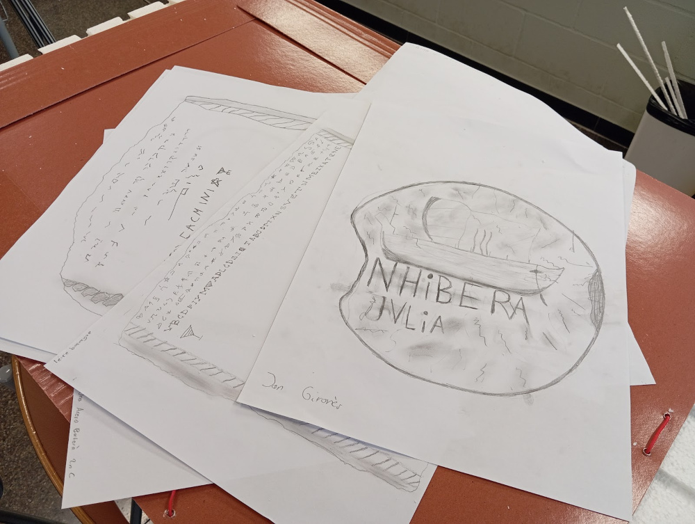 A l’optativa de decorats de teatre, l’alumnat està creant reproduccions d’elements ibers i romans trobats en excavacions a Tortosa: gerres globulars, collars, fletxes de sílex, monedes…