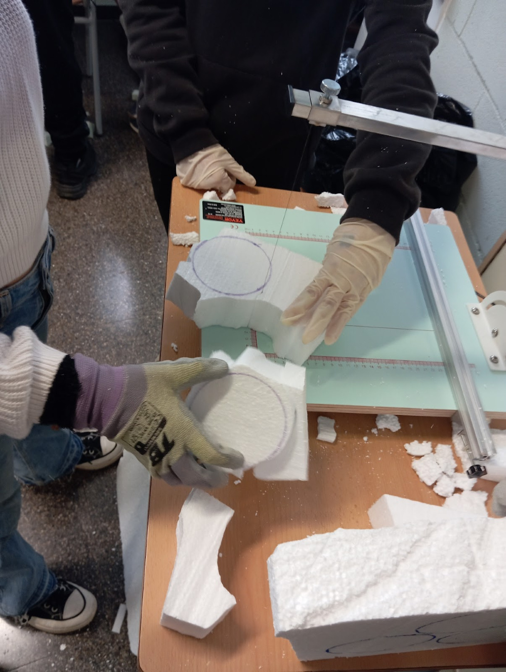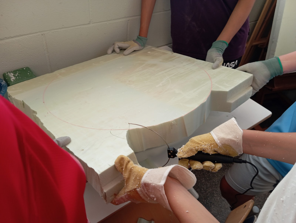 Amb eines professionals i tot el material de seguretat, donen forma al poliestirè, seguint els seus propis dissenys i croquis. Aquest curs, els alumnes de 2n d’ESO estan creant aquestes fantàstiques peces que, abans d’acabar el curs, veuran la llum.