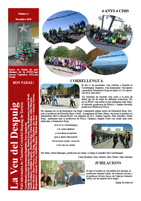 En aquest tercer número es fa un repàs de les activitats extraescolars més destacades del primer trimestre del curs: 4 anys 4 cims, el Correllengua, etc.