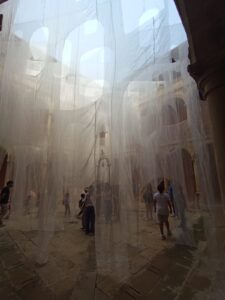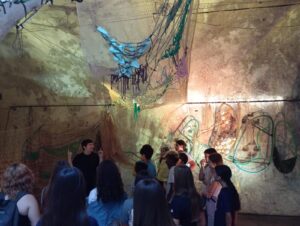 Un dels moments més especials va ser la visita a l’obra col·laborativa entre els centres educatius de Tortosa, ja acabada i exposada al pati del Museu de Tortosa, a l’antic escorxador. Els nostres xiquets i xiquetes de 1r d’ESO hi van participar pintant una porta com un llenç en blanc, sense saber com serien les altres que conformarien l’obra conjunta. La sorpresa i la il·lusió de veure el resultat final van ser enormes!
