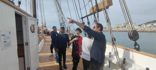 L’alumnat va poder dur el timó, desplegar veles, practicar nusos mariners i interpretar cartes nàutiques.