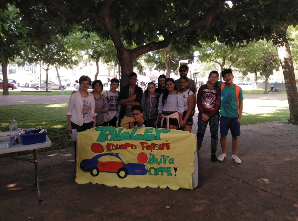 Un cop més ens hem reunit els centres pertanyents a l’Agenda 21 escolar de l’Hospitalet per intercanviar experiències i fer tallers, en motiu de la cloenda de curs. El nostre institut ha contribuït realitzant el taller “Bufa i corre”, amb uns cotxes elaborats amb materials reciclats impulsats per l’aire d’un globus. Els participants en aquesta