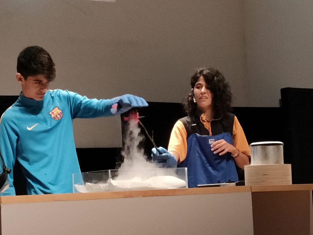 L’alumnat de 2n ESO ha fet una sortida al CosmoCaixa de Barcelona. Han gaudit de les múltiples exposicions permanents que hi ha i, posteriorment, han participat en un taller de Química, anomenat “Materials Sorprenents”, que consisteix en estudiar diferents propietats de la matèria, com es pot observar en les següents imatges.