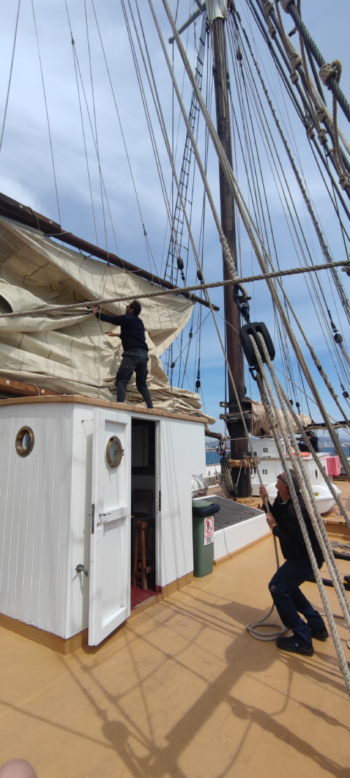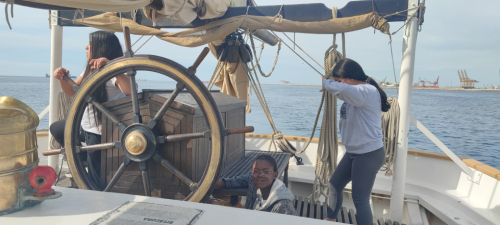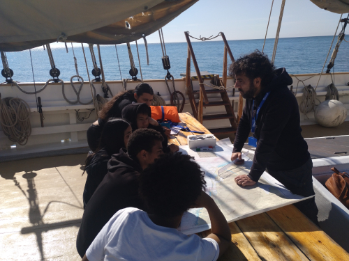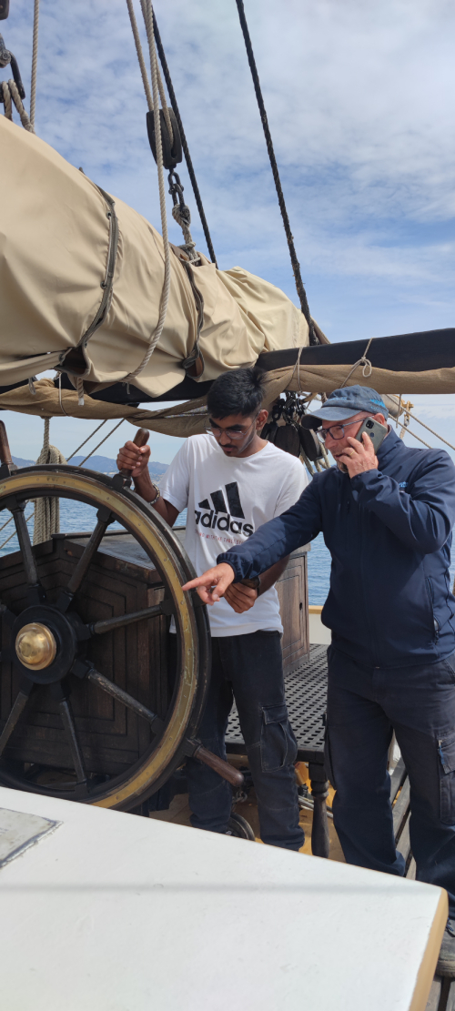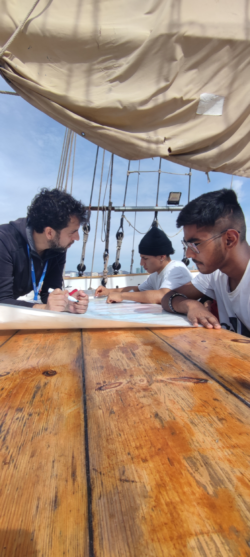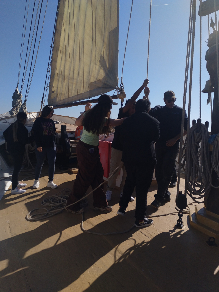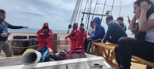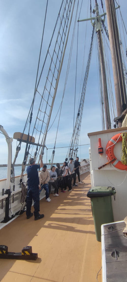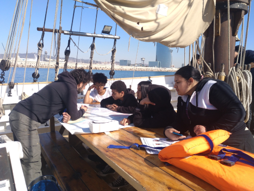 L’alumnat va poder dur el timó, desplegar veles, practicar nusos mariners i interpretar cartes nàutiques. A més, el clima va acompanyar tot el matí i el mar estava molt i molt tranquil.