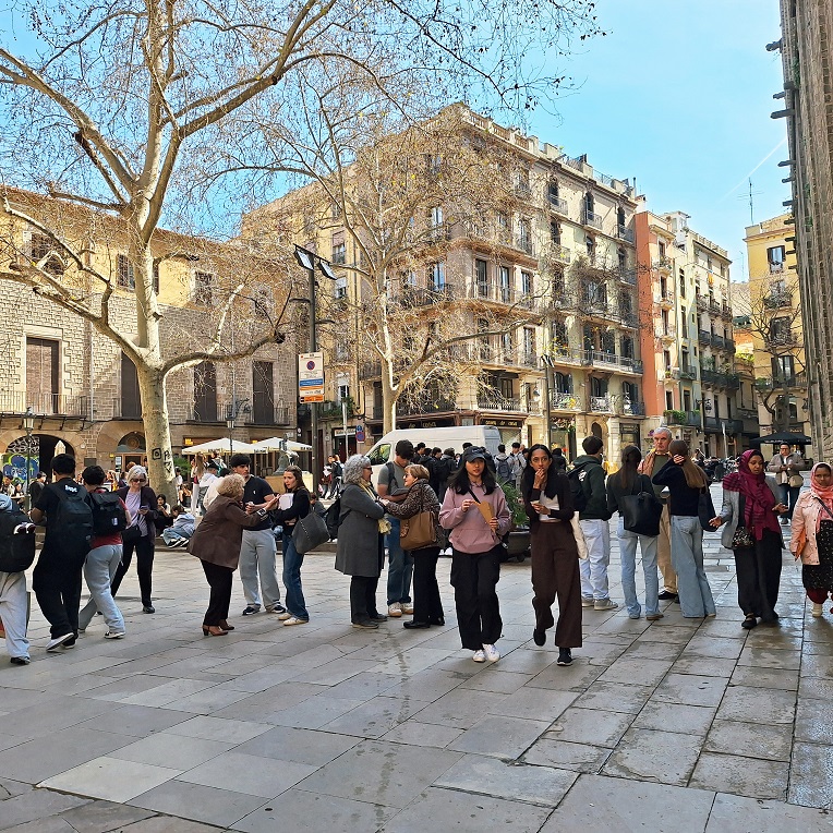 El dia 11 de març els alumnes de 2n de Batxillerat de les matèries de Geografia i Història de l’Art van fer una sortida per Barcelona per conèixer alguns espais emblemàtics de la capital catalana. Es va realitzar un recorregut circular que partint des de la plaça de Catalunya va passar pel MACBA, la parròquia i hospital de campanya de Santa Anna, la plaça de Sant Felip Neri, l’església del Pi, la Rambla, la plaça de Sant Jaume amb la Generalitat i l’Ajuntament, l’església dels Sants Just i Pastor (on aquells que van voler van poder pujar al campanar) i la basílica gòtica de Santa Maria del Mar.