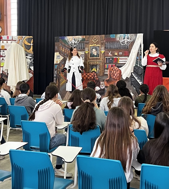 Avui l’alumnat de 1r i 2n ESO han pogut conèixer la història de Frankenstein i Mary Shelley a través d’un musical en anglès. Per seguir-ho tota la representació molt millor les cançons s’han treballat prèviament a les aules.