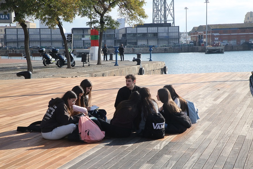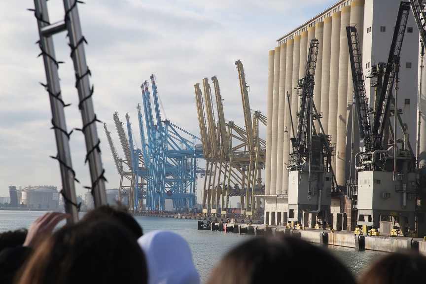 En el marc del projecte Tibem el Fil, l’alumnat de 3r d’ESO ha visitat el Port de Barcelona, fent un recorregut guiat en golondrina per veure de prop l’activitat portuària a la capital catalana. Culminen d’aquesta manera un trimestre en què de la mà de les matèries de Socials, Castellà i Tecnologia han resseguit el procés de producció, transport i compravenda de la indústria tèxtil a nivell global, i les problemàtiques que se’n desprenen.