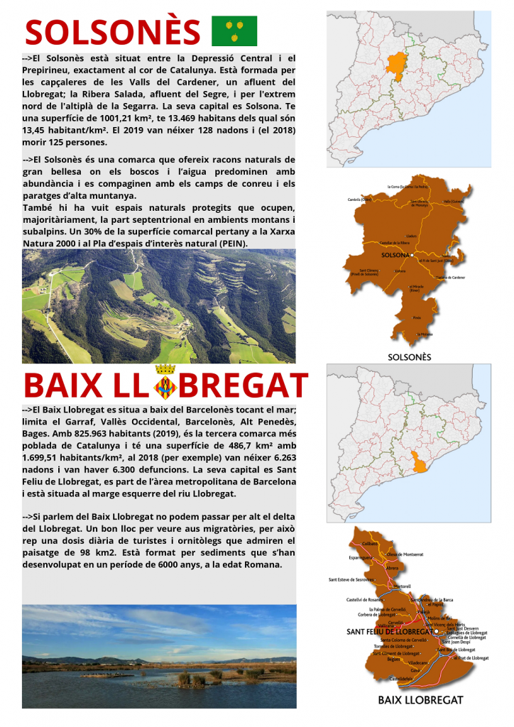 Els alumnes de 3r van realitzar una sèrie de cartells dedicats a les comarques de Catalunya. L’objectiu era incloure informació bàsica i mostrar els principals punts d’interès de la comarca, tant pel que fa al turisme com a la recerca i el medi ambient.