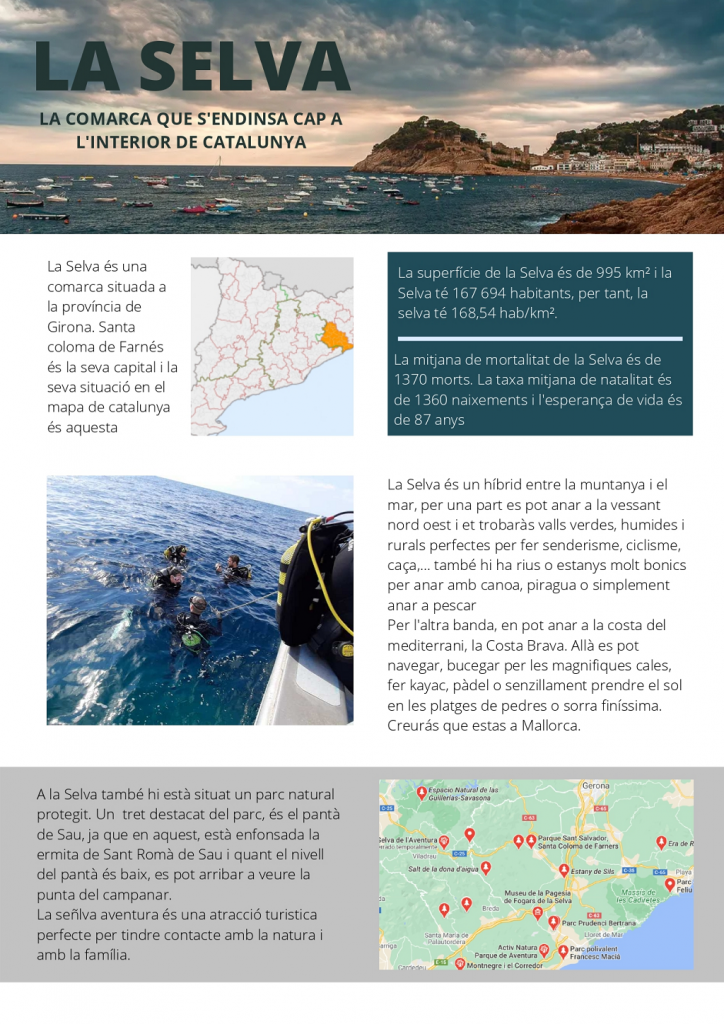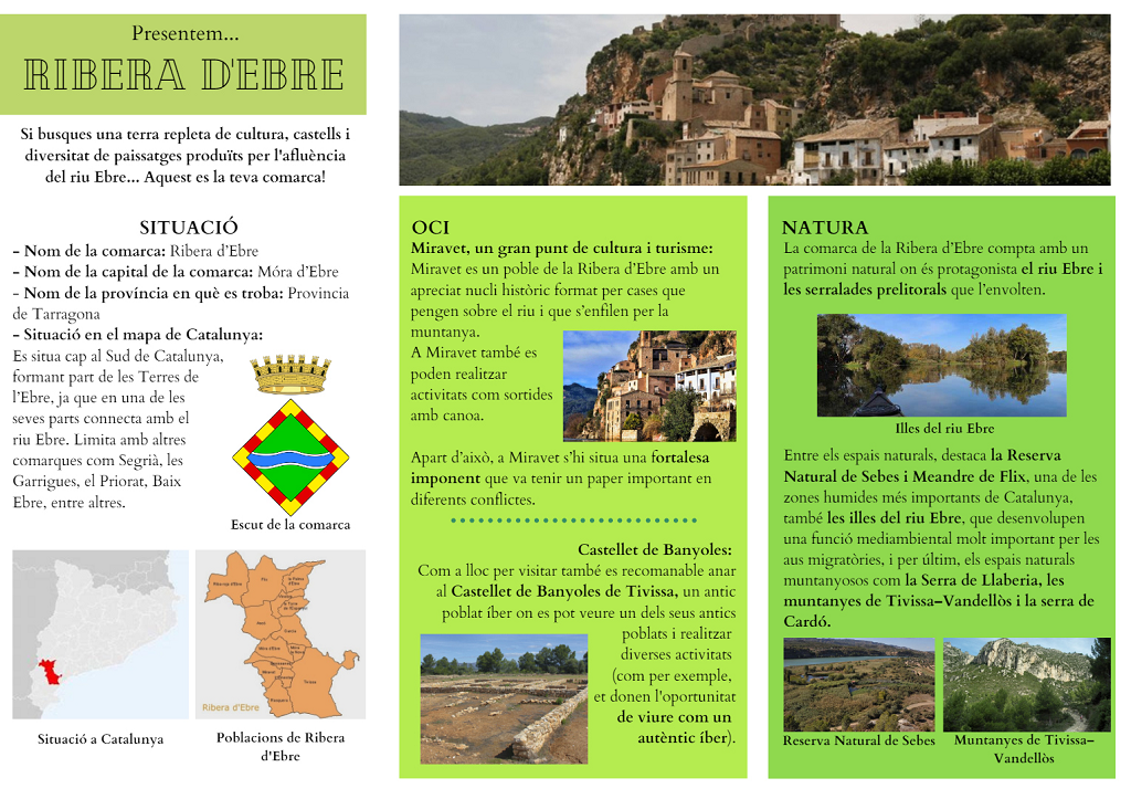 Els alumnes de 3r van realitzar una sèrie de cartells dedicats a les comarques de Catalunya. L’objectiu era incloure informació bàsica i mostrar els principals punts d’interès de la comarca, tant pel que fa al turisme com a la recerca i el medi ambient.