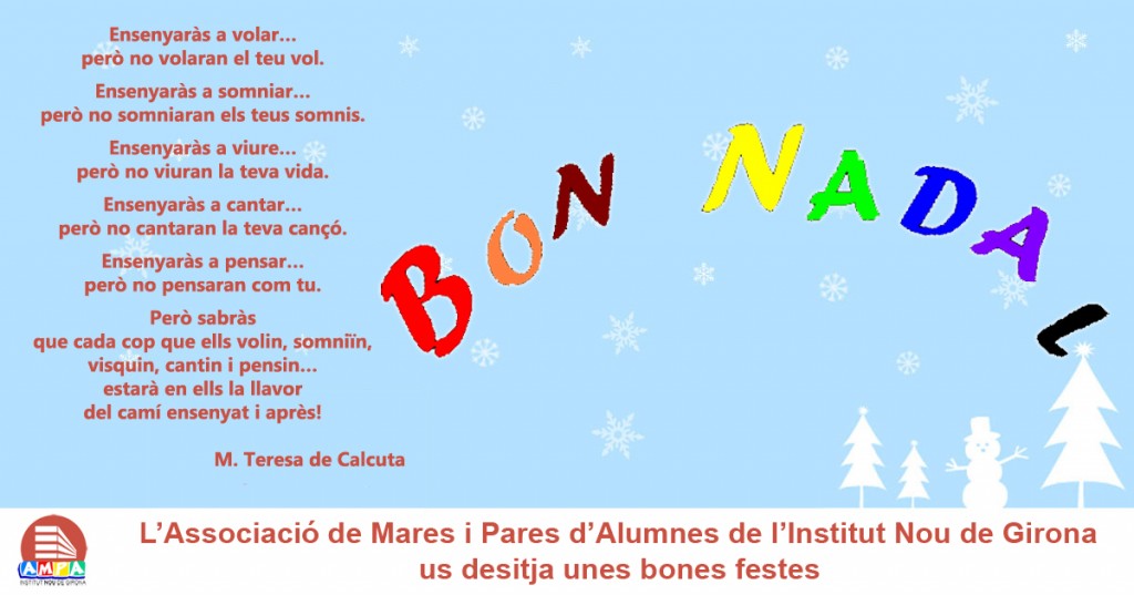 El dimarts 23 de desembre va tenir lloc a l’Institut Nou de Girona la primera Festa de Nadal, molt esperada per tots els alumnes. La celebració es va iniciar a les 9h del matí amb la realització dels diferents tallers proposats per a aquesta diada: elaboració de dolços (piruletes de Nutella i Lacasitos i bombons […]