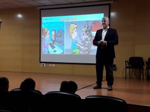 In October, an expert from Mcaffee came to give us a speech about Cybersecurity. The talk was completely in English but we understood it quite well and learned a lot about the dangers we are exposed through the internet. The pictures were attractive and, as he also was a fan of comics, we could ask him questions about our favourite superheroes. We had real fun!