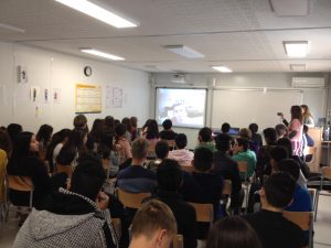 Inicialment les noves tecnologies no permetien el contacte via Skype, no acabava d’anar bé. Les tres classes de 2n d’ESO de Can Prunell de l’INS Ermessenda, estaven pendents de poder contactar amb l’animador Marc Calvelo. Finalment, després de molts intents, el contacte via imatge i so va ser possible i vam poder fer quasi totes les preguntes preparades.