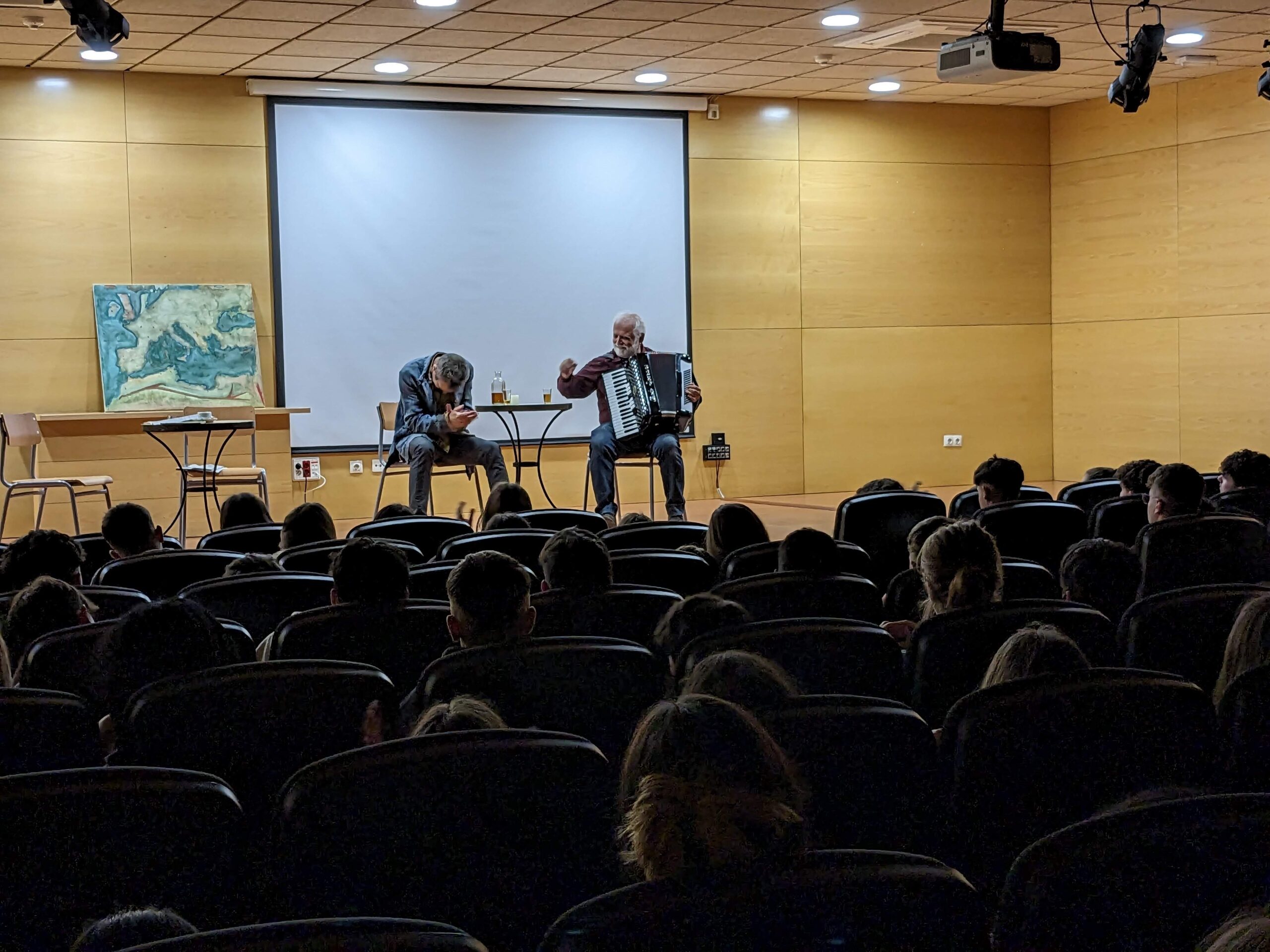 Els alumnes ambaixadors d’aquest curs 2022-2023 van assistir el passat divendres 5 de Maig a una adaptació teatral de l’obra “La idea d’Europa” de George Steiner a càrrec de l’actor Oscar Intente. Aquesta activitat s’ha realitzat amb una altra EPAS de Girona (malauradament, l’EPAS de Celrà no ha pogut participar per un problema de calendari). Els alumnes de 1r de Batxillerat de Salvador Espriu van venir a l’auditori de Cartanyà i conjuntament vam posar en comú totes les activitats, tallers, conferències, sortides que hem portat a terme al llarg d’aquest curs. Aquesta activitat forma part del programa EPAS i ha estat possible gràcies a l’Oficina del Parlament Europeu de Barcelona i la coordinació amb Europe Direct de Girona. S’ha portat a terme en la setmana més senyalada, al voltant del 9 de Maig que és el Dia d’Europa.
