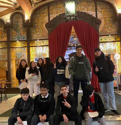 Tot seguit, el grup es va desplaçar fins al Palau de la Música Catalana, un dels edificis modernistes més emblemàtics de Barcelona. Allà, van poder apreciar la seva arquitectura única i entendre la importància cultural que aquest espai té per al patrimoni català.