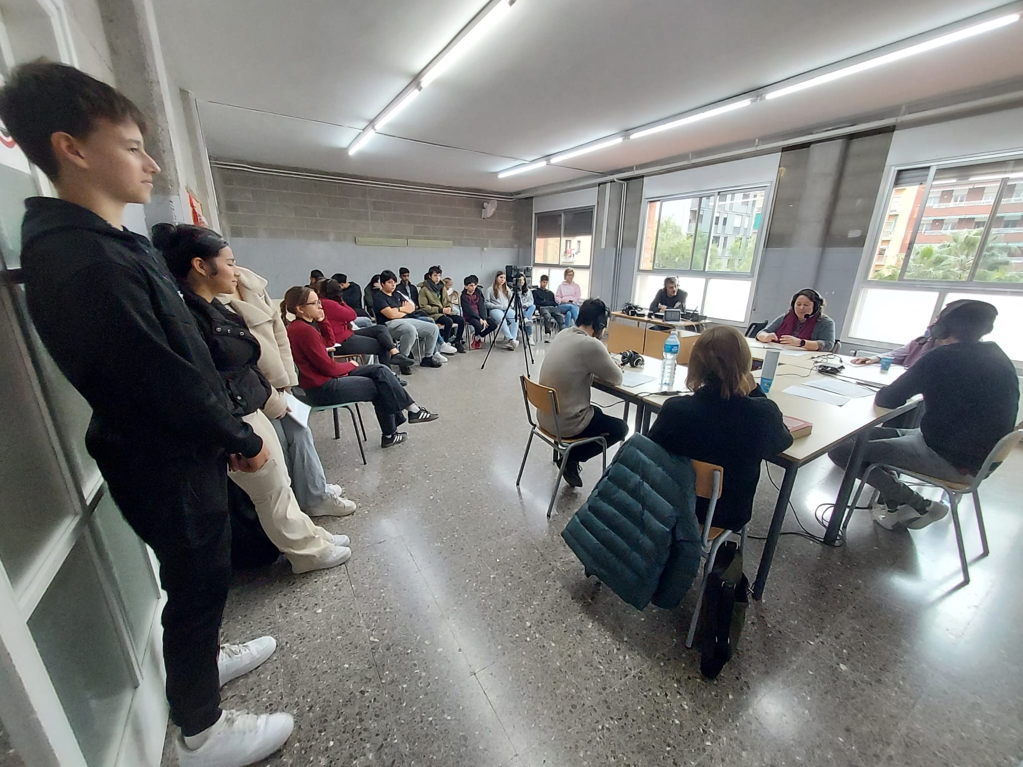 El passat 7 de març, el programa de ràdio Aquí Catalunya de la Cadena SER es va gravar a les aules de l’INS Fort Pius. En Pablo Tallón, director del programa, va venir amb convidades per parlar de l’actualitat del feminisme: la Custodia Moreno (activista), Laia Rosich (psicòloga experta en violència de gènere) i en Guillem Fabo (periodista). A més, van aprofitar per conèixer com viu l’alumnat aquesta situació, i per això també es va convidar la comissió feminista, alumnat de l’optativa de pòdcast i professorat del centre.