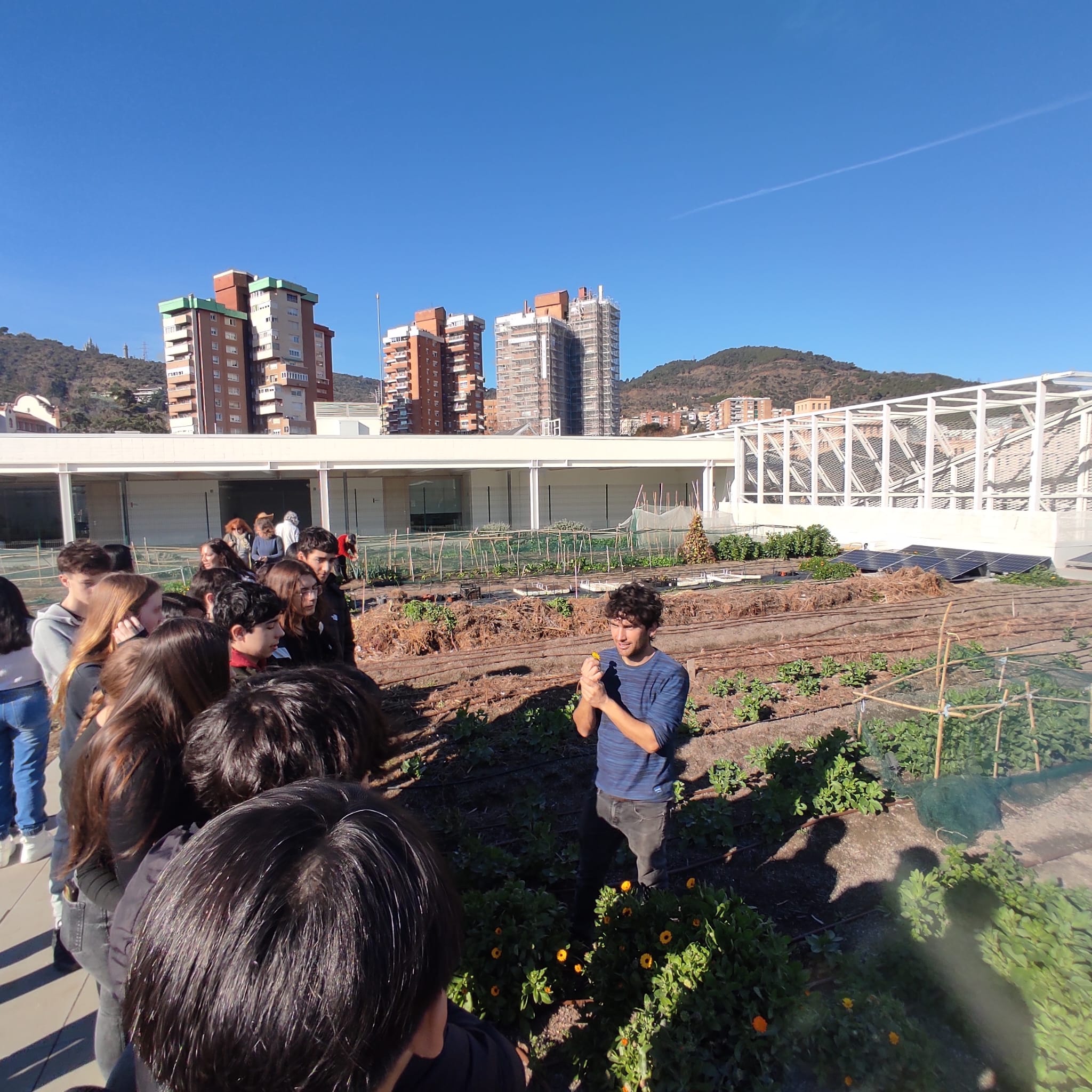 L’alumnat de tercer d’ESO ha visitat el Mercat de la Vall d’Hebron i també l’hort urbà que té a la coberta. Amb aquesta sortida, que forma part de l’optativa d’ODS, els i les estudiants de tercer d’ESO han pogut fer dos tallers. El primer, consistia en una visita al Mercat per entendre d’on ve el nostre menjar i quina petjada ecològica pot tenir i, el segon, a veure de primera mà quines verdures i plantes aromàtiques es poden cultivar a la ciutat de Barcelona.
