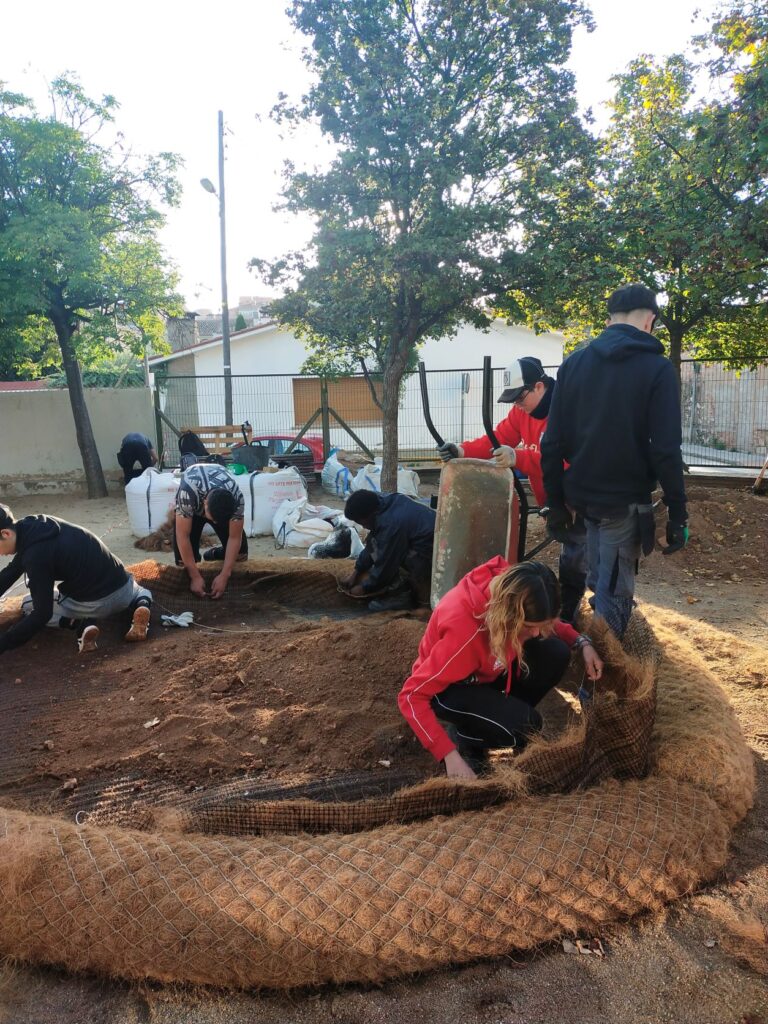 Durant els mesos d’octubre i novembre, el grup de PFI d’Auxiliar de Jardineria i Viver de l’institut hem estat realitzant un projecte a l’Escola Emili Carles -Tolrà de Castellar del Vallès. En aquesta col·laboració hem arreglat els bancals i el “pastís” de joc de la zona del pati. Quan vam arribar ens vam trobar els