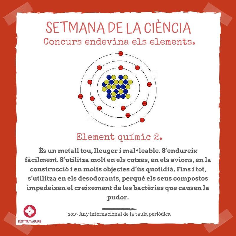 El Departament de ciències ha organitzat un concurs anomenat Endevina l’element químic per a la 24a Setmana de la Ciència, que es celebra del 8 al 17 de novembre.