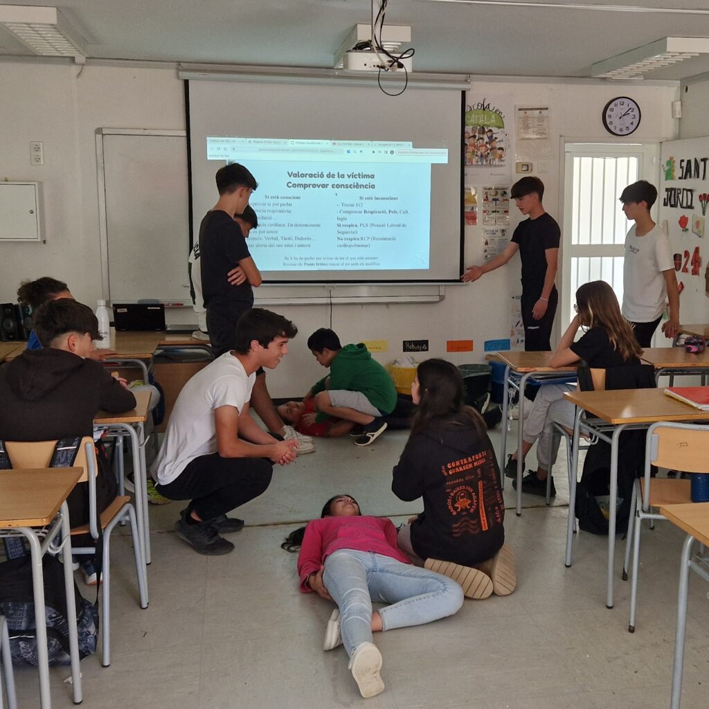 Des de la matèria de modalitat de Salut i persones de l’itinerari de Cicles de Salut, els alumnes han fet una immersió en el món sanitari i van rebre un taller de primers auxilis per part del seu professor, Gerard Boix. Aquesta formació els ha aportat bagatge per actuar en cas d’emergència, fer trucades efectives al 112, saber què fer en cas de veure fractures, pèrdues de coneixement, parades cardiopulmonars…
